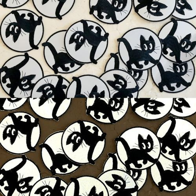 Tags: cat, feline, pet, domestic, glow in the dark, reflective, safety, waterproof, sticker, patch