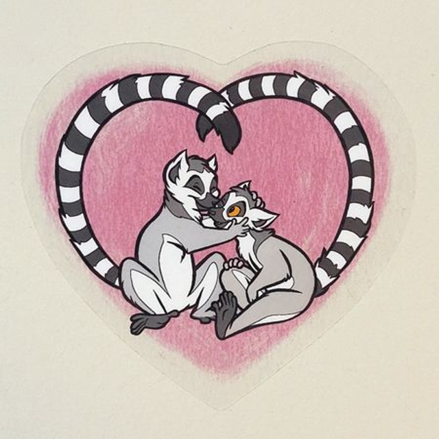Tags: ring-tailed lemur, madagascar, primate, wildlife, pink, heart, transparent, sticker, waterproof, envelope